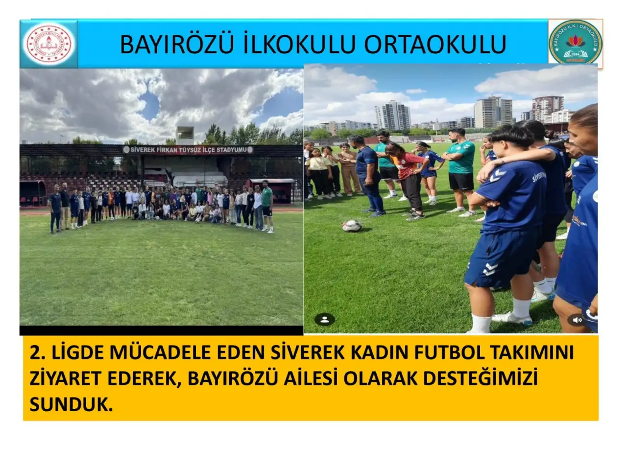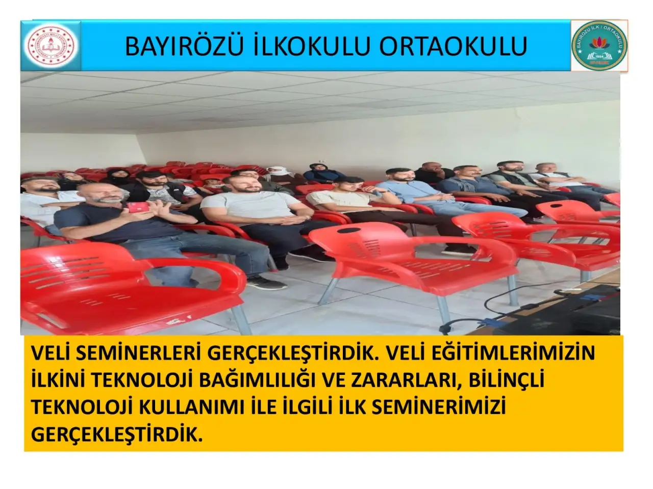 Okul yönetimi, eğitimin paydaşı olan velileri de unutmadı; teknoloji bağımlılığı ve zararlı içeriklerle mücadele kapsamında "Bilinçli Teknoloji Kullanımı" seminerlerinin ilki gerçekleştirildi. Ailelerin dijital dünya karşısında nasıl bir duruş sergilemesi gerektiğinin anlatıldığı bu eğitimler büyük ilgi gördü. Öte yandan toplumsal farkındalığı artırmak adına Bayırözü ailesi, Türkiye 2. Ligi'nde mücadele eden Siverek Kadın Futbol Takımı’nı ziyaret ederek yerel sporculara tam destek sundu. Bu ziyaret, öğrencilere sporun her dalında var olabilecekleri mesajını verdi.