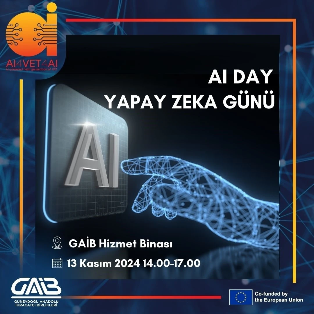 Güneydoğu Anadolu İhracatçı Birlikleri (GAİB), teknoloji dünyasında çığır açan gelişmelerin başında gelen yapay zeka konusunu ele almak üzere, AI Day/Yapay Zeka Günü etkinliği düzenleyeceğini duyurdu. Bu etkinlik, GAİB’in ortağı olduğu AI4VET4AI AB Erasmus+ Projesi çerçevesinde planlanmakta olup, 13 Kasım Çarşamba günü GAİB Hizmet Binası Konferans Salonu’nda gerçekleşecek.