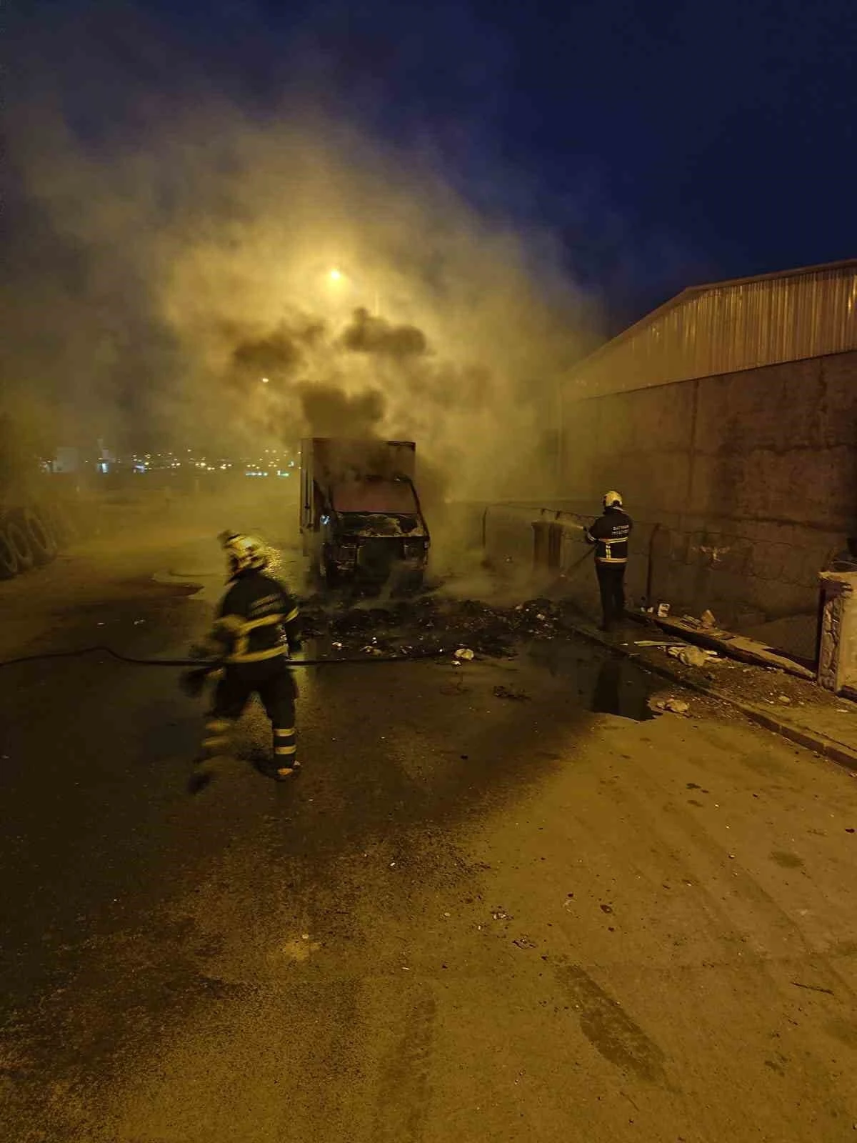 İhbarın ardından olay yerine hızla intikal eden itfaiye ekipleri, kısa sürede alevlere müdahale etti. Polis ekipleri ise çevre güvenliğini sağlayarak vatandaşların yaklaşmasını önledi. Yangın kontrol altına alınırken, kamyonet tamamen yanarak kullanılamaz hale geldi.