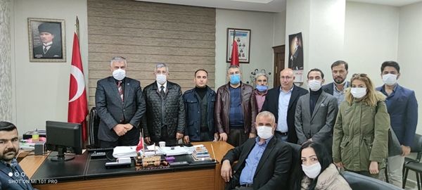 Dr. Abdullah Yeşil teşkilatı ile birlikte Belediye İş Sendikası başkanı Adem Şiltak ve yönetimini ziyaret etti. Dr. Abdullah Yeşil Belediye İş Sendikası başkanı Adem Şiltak ile birlikte Personel maaşları, Belediye çalışanlarının özlük hakları izerine Çeşitli istişarelerde bulundular.