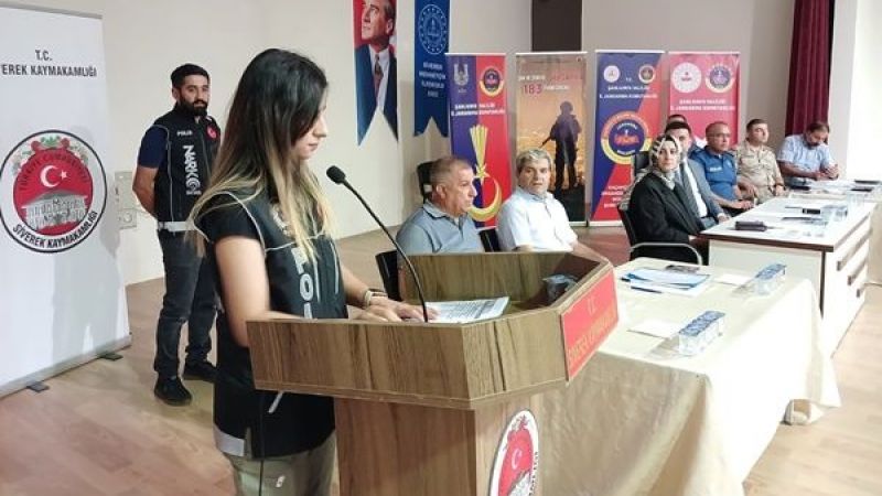 Toplantı saygı duruşunun ardından tolca istiklal marşının okunmasıyla başladı. Toplantıda ilçe emniyet ve jandarma narkotik görevlileri madde bağımlılığıyla ilgili sunum yaparak” madde bağımlılığının insan bedeni yaptığı olumsuz etkileri slayt olarak anlatılıp muhtarların kendi bölgelerinde madde bağımlılığıyla ilgili duyarlı olmalarının toplumsal bir yarar sağlanacağı dile getirildi.