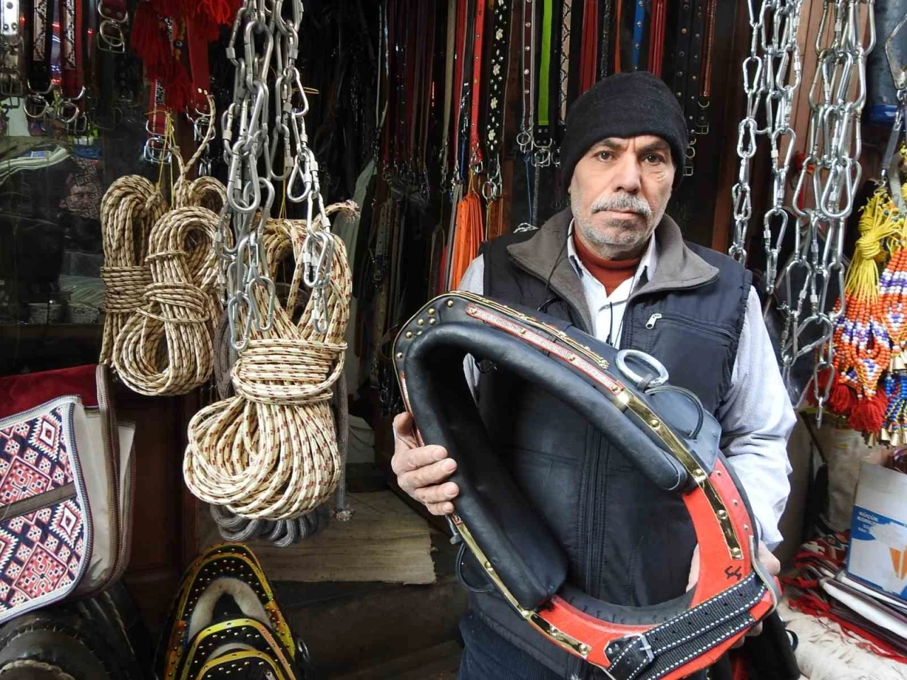 Gaziantep Bakırcılar Çarşısı’nda saraççılık yapan Yılmaz, eğer, semer ve heybe gibi geleneksel ürünler üretiyor. El işçiliğiyle deriden ve bezden yapılan ürünler, Gaziantep’e özgü motiflerle süsleniyor. “Önce kalıplarını oluşturuyor, ardından sırasına göre kesip yapıyoruz. Bu süreç, bana hem keyif hem de üretim mutluluğu veriyor.” dedi.