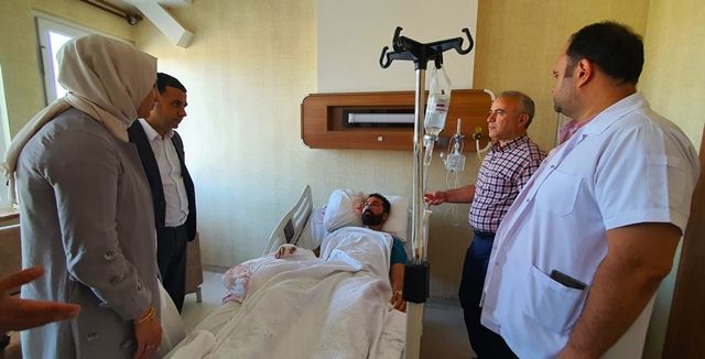 Şanlıurfa’nın Siverek ilçe Kaymakamı Aziz Gölbaşı, Belediye Başkanı Ayşe Çakmak, AK Parti Siverek ilçe başkanı Nedim Lale ile birlikte Siverek ilçesinde mera yangınına müdahale eden itfaiye aracının yanması sonucu, yaralanan itfaiye erini hastanede ziyaret ettiler.