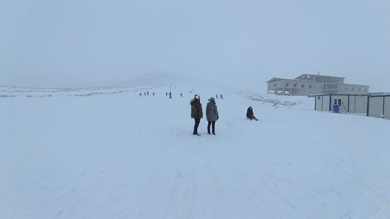 Çevre il ve ilçelerden gelen vatandaşlar, kar üzerinde mangal keyfi yaparken çocuklar ise kar topu oynayarak kızakla kaydı.