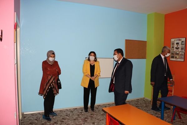 Kreş ve gündüz bakım evlerini tek tek gezen İl Müdürü Hasan Bilici, sosyal mesafe, maske ve hijyen konusunda uyarılarda bulunarak salgının en başarılı ve tedbirli bir şekilde atlatılması için dikkat edilmesi gereken konularda yetkililerle istişarelerde bulundu.