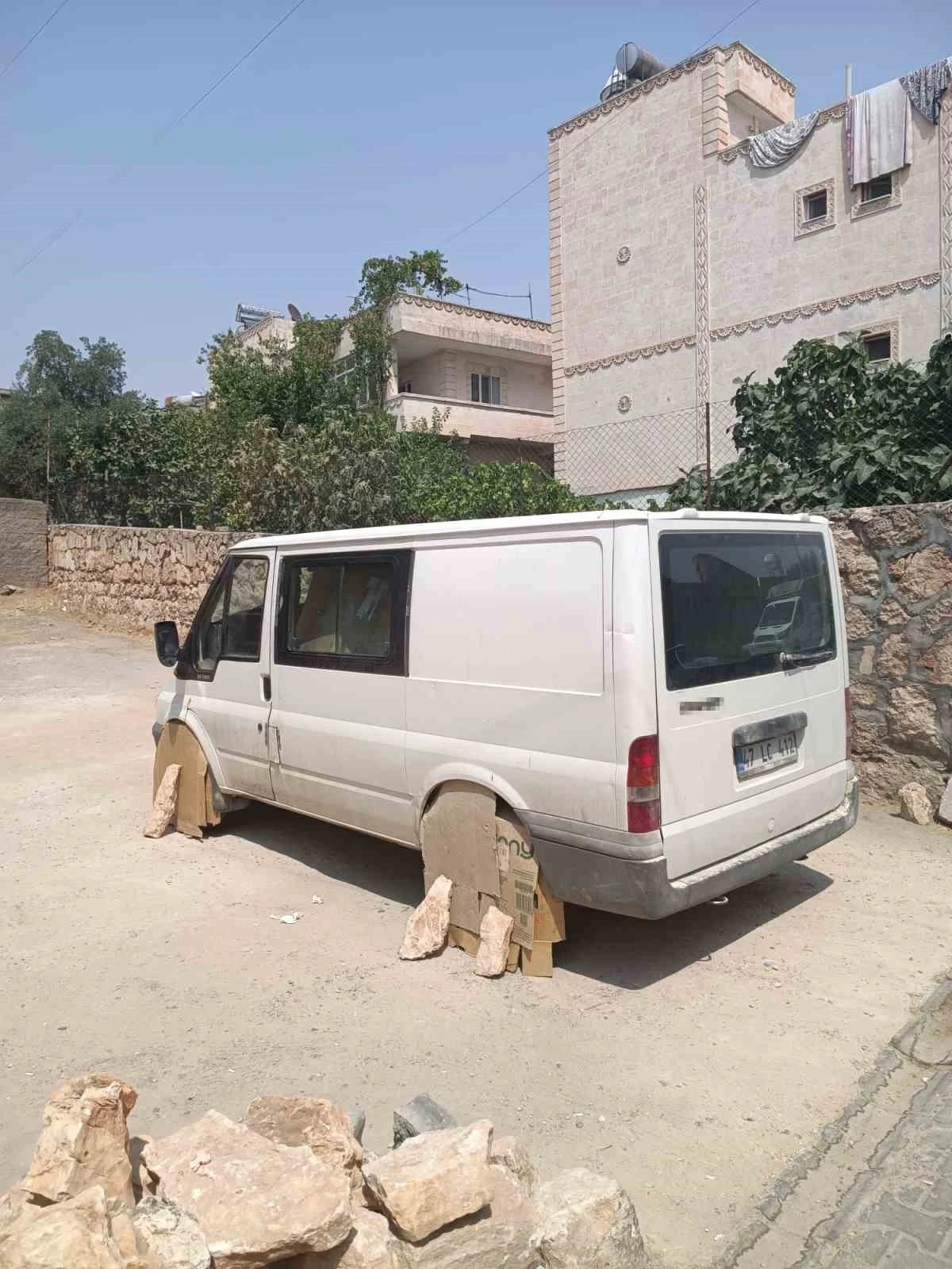Mardin’in Midyat ilçesinde etkili olan aşırı sıcak hava dalgası, vatandaşları alışılmadık önlemler almaya itti. Özellikle araç sahipleri, güneşin etkisini en aza indirmek için çeşitli yollar deniyor. Bu kapsamda bir minibüs sürücüsünün, aracının tekerlerini güneşten korumak için kartonla kapladığı görüldü. İlginç yöntem, görenlerin dikkatini çekti ve sosyal medyada kısa sürede yayıldı.