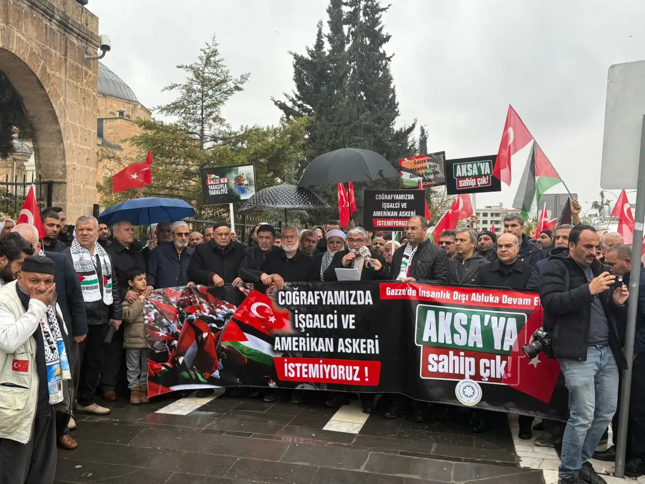 Şanlıurfa Sivil Toplum Kuruluşları (STK) Platformu, bölgedeki askeri hareketlilik ve sistematik zulme karşı duruşunu sergilemek amacıyla Eyyübiye ilçesinde bulunan Hz. Eyyüp Peygamber Camii önünde dev bir basın açıklaması düzenledi. "Coğrafyamızda işgalci istemiyoruz" temasıyla bir araya gelen yüzlerce temsilci ve vatandaş, emperyalist güçlerin bölge üzerindeki emellerine karşı sert bir duruş sergiledi. Platform adına açıklamalarda bulunan İHH Şanlıurfa Başkanı Behçet Atila, bölge halklarının iradesini yok sayan ve sınırları kanla yeniden çizmeyi hedefleyen hiçbir senaryoyu kabul etmeyeceklerini ilan etti. Şehrin manevi atmosferinde yankılanan bu duruş, yerel halkın Filistin davasına olan sarsılmaz sadakatini bir kez daha gösterdi.
