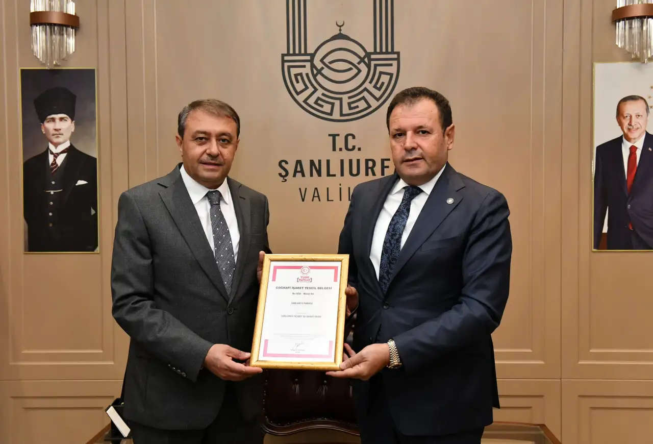 Şanlıurfa Ticaret ve Sanayi Odası Başkanı Mehmet Doğan Yetim ve Yönetim Kurulu Üyeleri, Şanlıurfa’nın en değerli tarımsal ürünlerinden biri olan pamuğun coğrafi işaret tescilini almak için önemli bir adım attı. Bu bağlamda, Vali Hasan Şıldak'ı makamında ziyaret eden heyet, Şanlıurfa Pamuğu Tescil Belgesini takdim etti. Bu tescil, Şanlıurfa pamuğunun kalitesini ve önemini ulusal ve uluslararası arenada tescillemiş oldu.