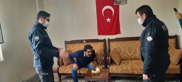 Koronavirüsle mücadele kapsamında ülke genelinde üç günlük sokağa çıkma kısıtlaması uygulanırken, Şanlıurfa’da doğum günü yasak günlerine denk gelen vatandaş için emniyet ekipleri pasta alıp evinde doğum gününü kutladı.