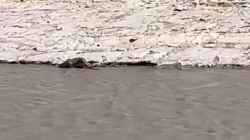 Dünyada nesli tükenme tehlikesiyle karşı karşıya bulunan ve uluslararası sözleşmelerle koruma altına alınan su samurunun görüntüleri bölgeden geçen bir vatandaş tarafından cep telefonu kamerasıyla kaydedildi.