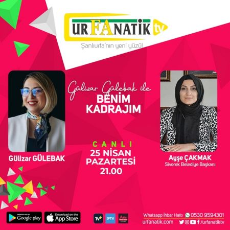 Ur fanatik Tv’de yayımlanan benim kadrajım programına bu hafta Siverek Belediye Başkanı Ayşe Çakmak konuk olacak.