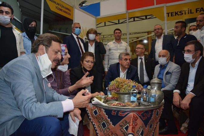 Standı ziyaret eden TBMM Plan ve Bütçe Komisyonu Başkanı Cevdet Yılmaz ve TOBB Başkanı Rıfat Hisarcıklıoğlu’nu Belediye Başkanı Ayşe Çakmak karşıladı.