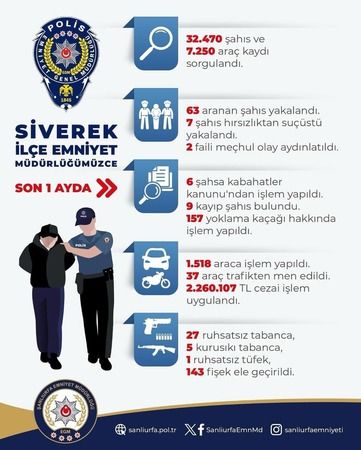 Şanlıurfa İli Siverek İlçe Emniyet Müdürlüğü, kentin çeşitli noktalarında gerçekleştirdiği yoğun güvenlik uygulamalarıyla dikkat çekiyor. İlçenin giriş ve çıkış noktalarında yapılan çalışmalar sonucunda toplamda 32,470 şahıs ve 7,250 araç sorgulandı. Bu sorgulamaların sonuçları, güvenlik tedbirlerinin ne kadar kapsamlı olduğunu gözler önüne seriyor.