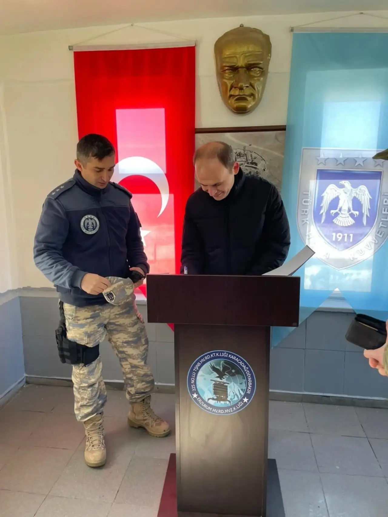 Protokol üyelerinin bir sonraki durağı, bölgenin huzur ve güvenliğinin teminatı olan Karacadağ Jandarma Karakolu oldu. Kırsal alanlardaki emniyetin sağlanması, kaçakçılıkla mücadele ve toplumsal huzurun korunması adına karakolda yürütülen devriye faaliyetleri ve operasyonel çalışmalar masaya yatırıldı. İlçe Jandarma Komutanı’ndan bölgedeki asayiş olaylarına dair son verileri alan heyet, görevi başındaki Mehmetçik ile bir araya gelerek moral verdi. Kaymakam Sak, halkın can ve mal güvenliğinin her şeyden önce geldiğini vurgulayarak sahadaki personelin kararlılığına dikkat çekti.