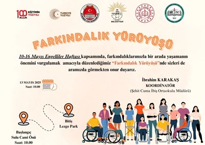 10-16 Mayıs Engelliler Haftası kapsamında, Siverek’te farkındalık oluşturmak amacıyla anlamlı bir yürüyüş organize ediliyor. Engelli bireylerin toplumsal yaşamda karşılaştıkları zorluklara dikkat çekmek ve dayanışma ruhunu pekiştirmek amacıyla düzenlenecek yürüyüşe tüm vatandaşların katılımı bekleniyor.