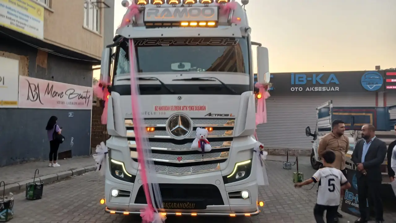 Şanlıurfa’nın Siverek ilçesinde alışılmışın dışında bir düğün konvoyu gerçekleşti. Tır kamyonlarına tutkusu olan bir damat için, tır şoförü arkadaşları özel bir sürpriz hazırladı. Düğün günü, tır kamyonları gelin arabası gibi süslenerek düğün konvoyunun parçası oldu. Bu sıra dışı görüntü, Siverek sokaklarında hem merak hem de şaşkınlık uyandırdı.