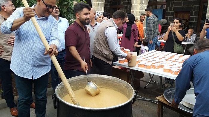Şenlik için tarihi gümrük hanının avlusunda toplanan yüzlerce vatandaşa Kerge kazanından bulamaç ikramı yapıldı.