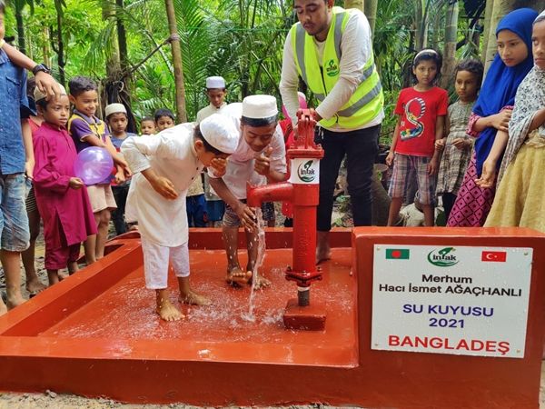 Ölmüş babalarının hayrına Bangladeş’te su kuyusu açtılar