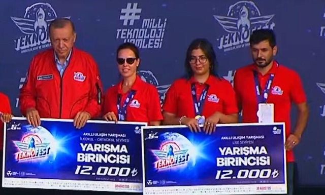 TEKNOFEST 2022 Samsun Finallerinde Yapay Zekalı Akıllı Yol projesiyle Siverek ilçesinde BİLSEM’de eğitim gören öğrenci S.Zelal Demir ve M. Enes Akçiçek ile ,danışman öğretmen B.Mustafa Özsüllü birincilik ödülünü kazandılar ödülü Cumhurbaşkanı Recep Tayyip Erdoğan takdim etti.