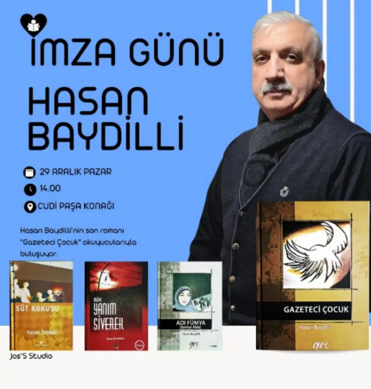 Şanlıurfa’nın Siverek ilçesinde yetişen ve edebiyat dünyasına kazandırdığı eserlerle tanınan Hasan Baydilli, yeni romanı *Gazeteci Çocuk* ile okuyucularının karşısına çıkıyor. Siverek halkının sevgisini kazanan ve edebiyat alanında köşe yazılarıyla da tanınan Baydilli, bu kez okurlarıyla birebir bir araya gelmenin mutluluğunu yaşıyor. Baydilli, Cudi Paşa Konağı’nda düzenlenecek imza günü etkinliğinde hem kitabını imzalayacak hem de okuyucularıyla sohbet edecek.