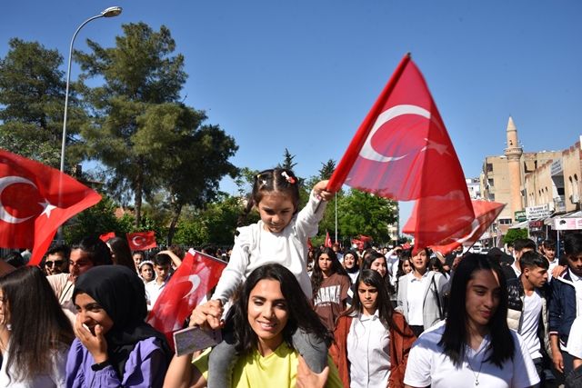 Siverek Kaymakamlığı binasının önünde başlayan kortej yürüyüşü, Cumhuriyet Meydanı’nda tamamlandı.