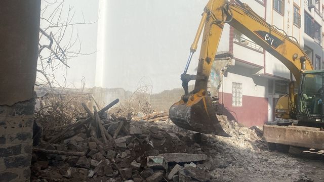 kaymakamlıķlar hasarlı ve tehlikeli binaların kontrolü yıkımına karar vermiş belediyeler iş makinalarıyla hasarlı binaları yıkmaya başladılar.