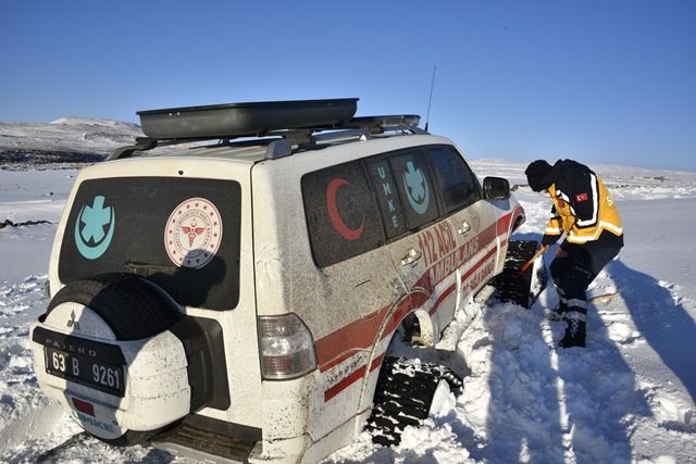 Siverek ilçesinde kar yağışının bir metreyi aştığı Karacadağ kırsal mahallerinde, yaşayan hastaların imdadına Siverek belediyesine ait iş makineleri, sağlık il müdürlüğüne bağlı paletli ambulans ve sağlık ekipleri zor şartlarda hastalara ulaştı.