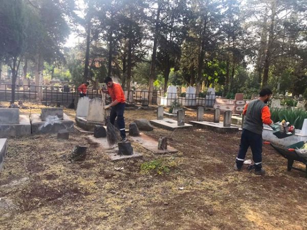 Çevre Koruma ve Kontrol Müdürlüğü ile Temizlik İşleri Müdürlüğünün ortak çalışmasıyla bayramda kabir ziyaretine gidecek vatandaşlar için mezarlıkların her noktası titizlikle temizleniyor.