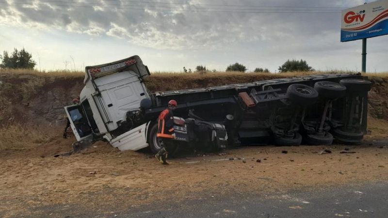 Şanlıurfa - Diyarbakır karayolunda, GAP Havalimanı mevkisinde meydana gelen kaza, 01 UN 543 plakalı bir tırın sürücüsünün kontrolünden çıkarak devrilmesiyle gerçekleşti. Kazanın anı, sürücüsünün kontrolünü kaybetmesi ve tırın yoldan çıkarak devrilmesiyle başladı.