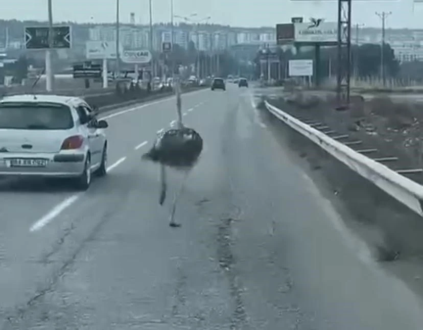Görüntüler Kaydedildi: Trafikteki Deve Kuşu Anları