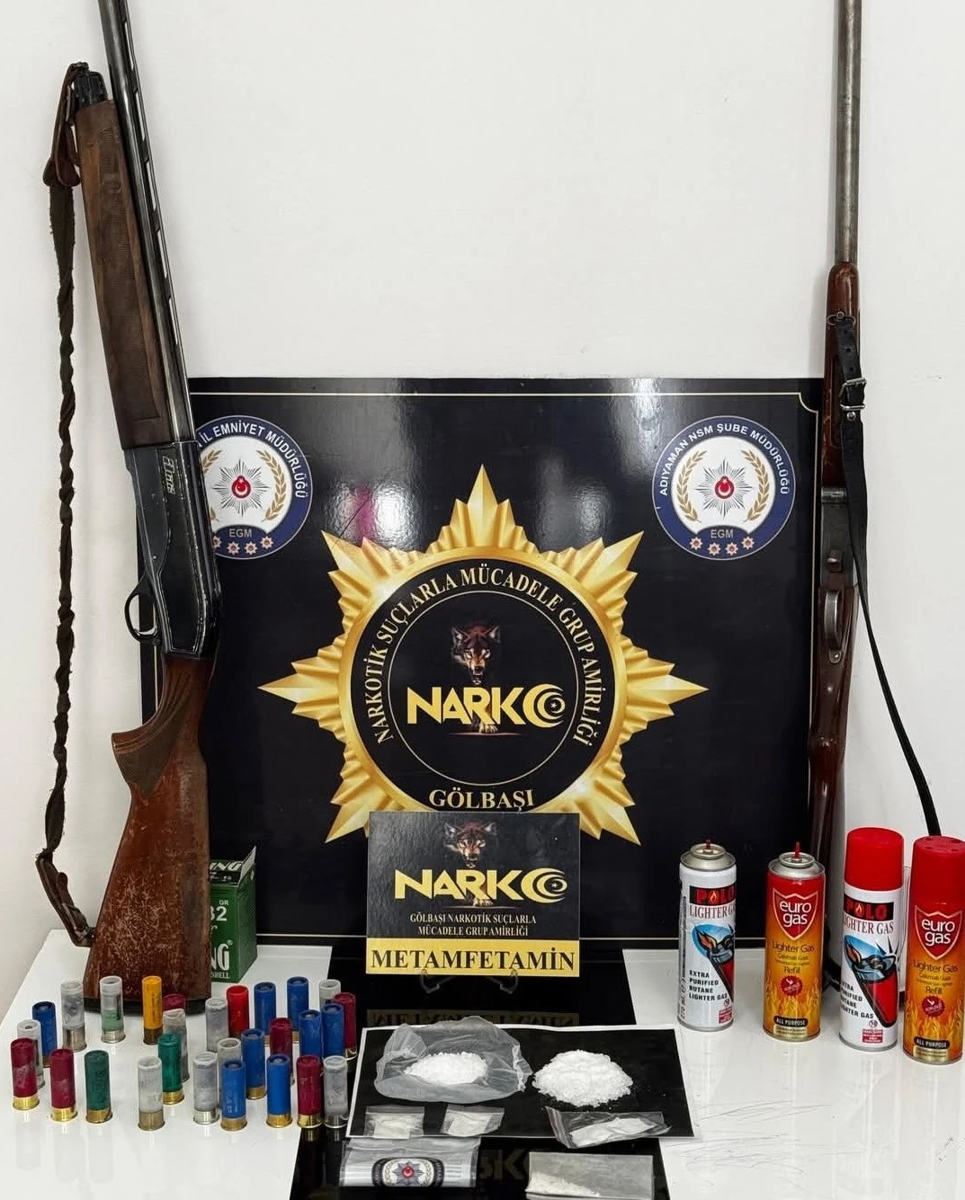 Gölbaşı’nda gerçekleştirilen operasyon kapsamında 3 farklı adrese baskın yapıldı. Operasyon neticesinde 48,45 gram metamfetamin maddesi, 2 adet av tüfeği ve 28 adet av tüfeği fişeği ele geçirilerek muhafaza altına alındı. Ele geçirilen malzemelerin, yasa dışı uyuşturucu ticaretinde kullanıldığı tahmin ediliyor.