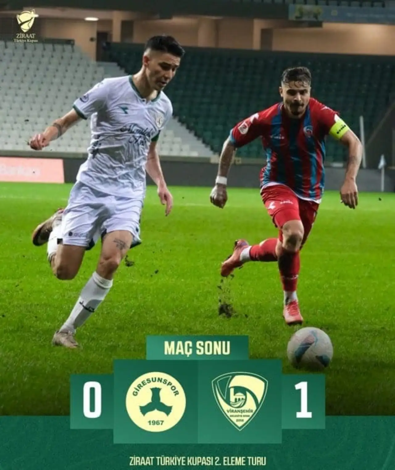 Ziraat Türkiye Kupası 2. Tur mücadelesinde TFF 3. Lig'de yer alan Viranşehir Belediyespor, zorlu bir deplasmanda Giresunspor'la karşı karşıya geldi. Maçın ilk dakikalarından itibaren oyuna hızlı başlayan Viranşehir ekibi, rakibine karşı üstün bir performans sergiledi. Çotanak Stadyumu'nda oynanan bu heyecan dolu karşılaşmada, Viranşehir taraftarları da tribünde yerini alarak takımlarına destek verdi.