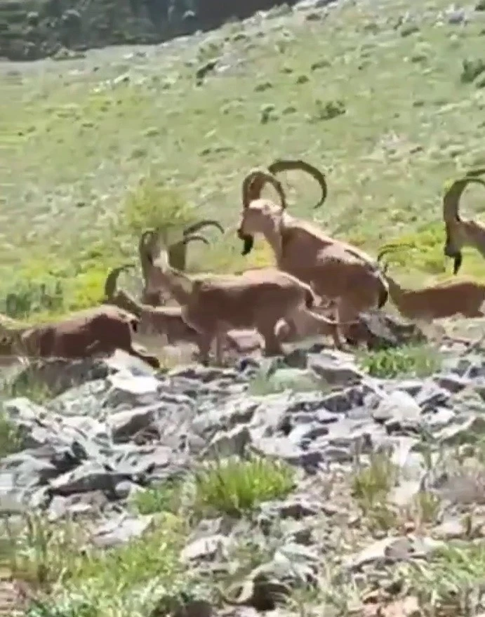 Adıyaman’ın Çelikhan ilçesine bağlı Ulubaba Dağı, bu kez yaban keçilerinin dikkat çeken bir davranışına sahne oldu. Dağın zirvesinde onlarca yaban keçisinden oluşan bir sürü, çevredeki bir vatandaş tarafından cep telefonuyla kaydedildi. Bu anlar, doğal yaşamın büyüleyici yönlerini gözler önüne serdi.