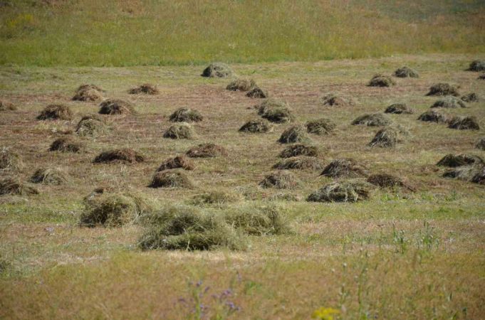 Ot ve samanları traktörlerle biçerek toplayan vatandaşlar, kış hazırlıklarına erken başladı. Yüksek rakımlı yaylada günlerdir çalışan yöre halkı, yaz sıcaklarına aldırış etmeden gün ortasında hazırlıklarını sürdürüyor. Bir ay boyunca sürecek olan ot toplama mesaisi torbalara konulduktan sonra yayladan indirilecek.