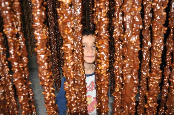 “Biz burada kendi cevizlerimizden ve bahçelerimizdeki üzümlerimizden cevizli sucuk yapıyoruz. Cevizli sucukları doğal yöntemlerle yapıyoruz. İlçede yılda 80 ton civarında cevizli sucuk üretimi yapıyoruz.” İHA